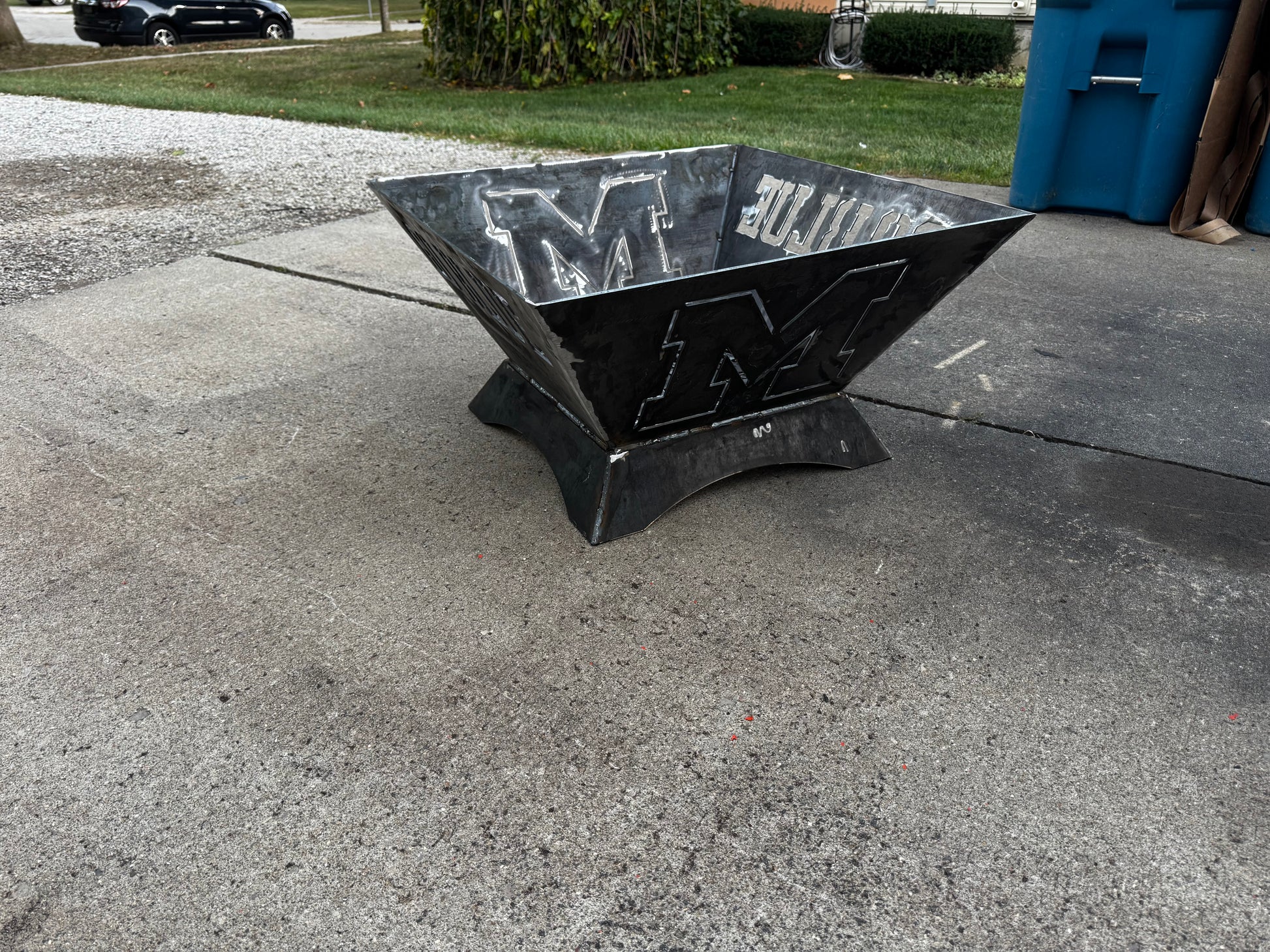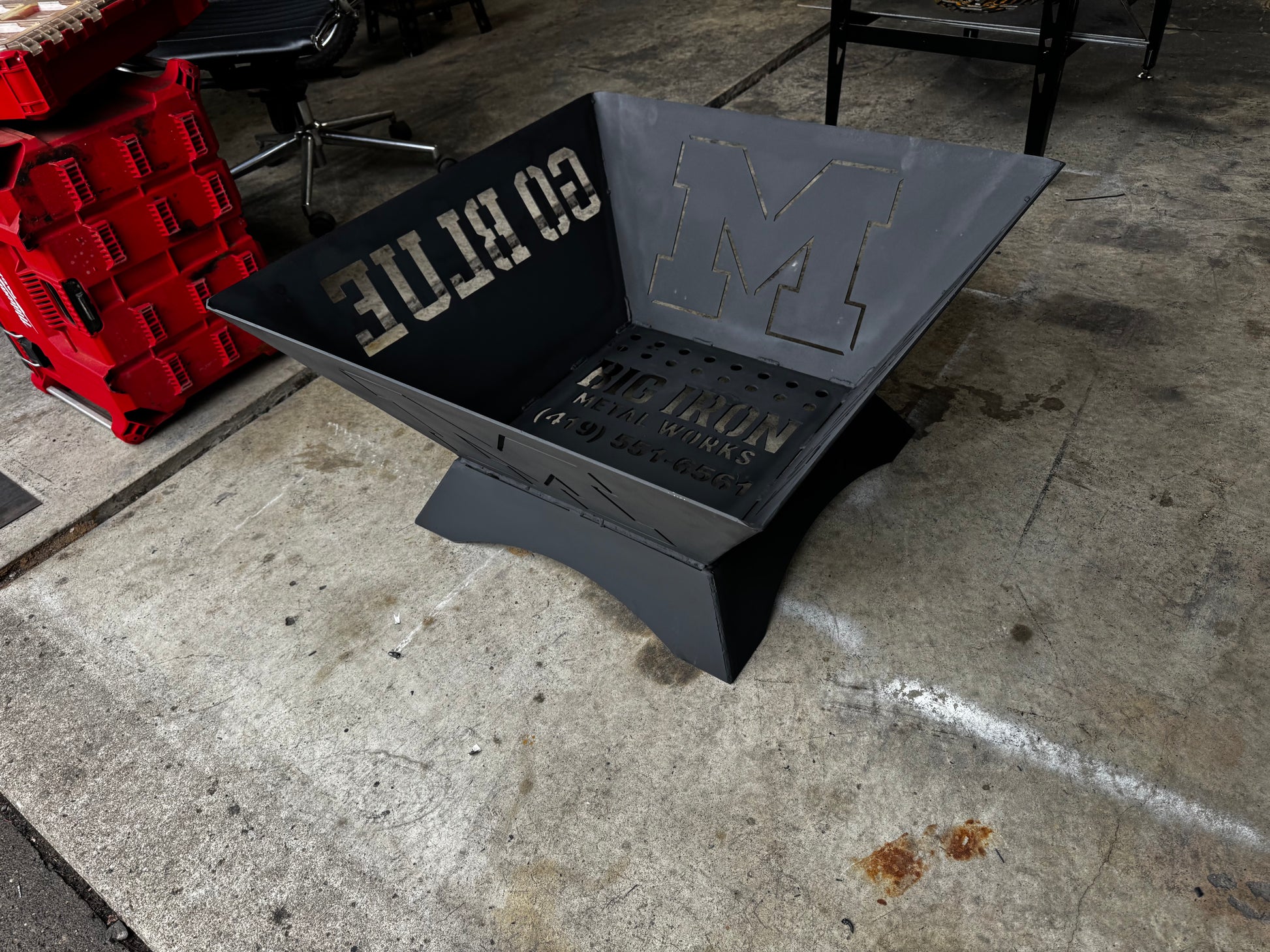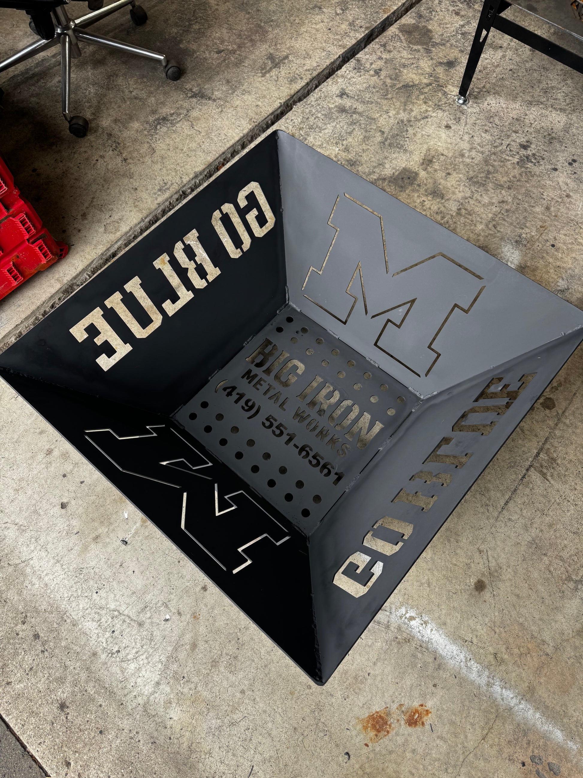 Show your team pride with this University of Michigan-themed firepit, featuring a bold “M” logo and “GO BLUE” cutout design that glows with every flame.