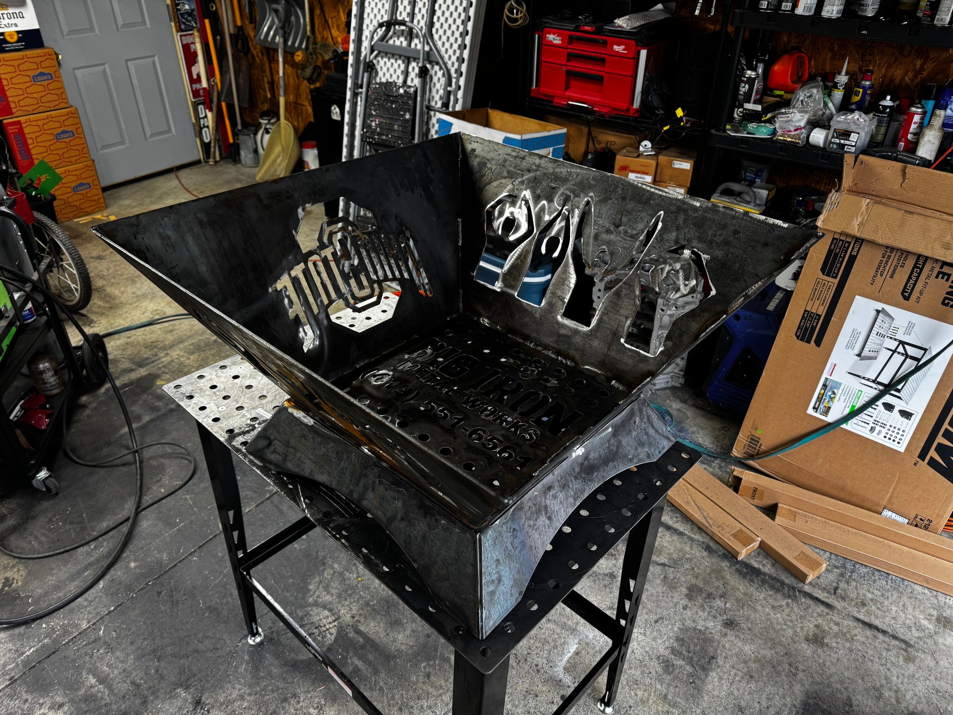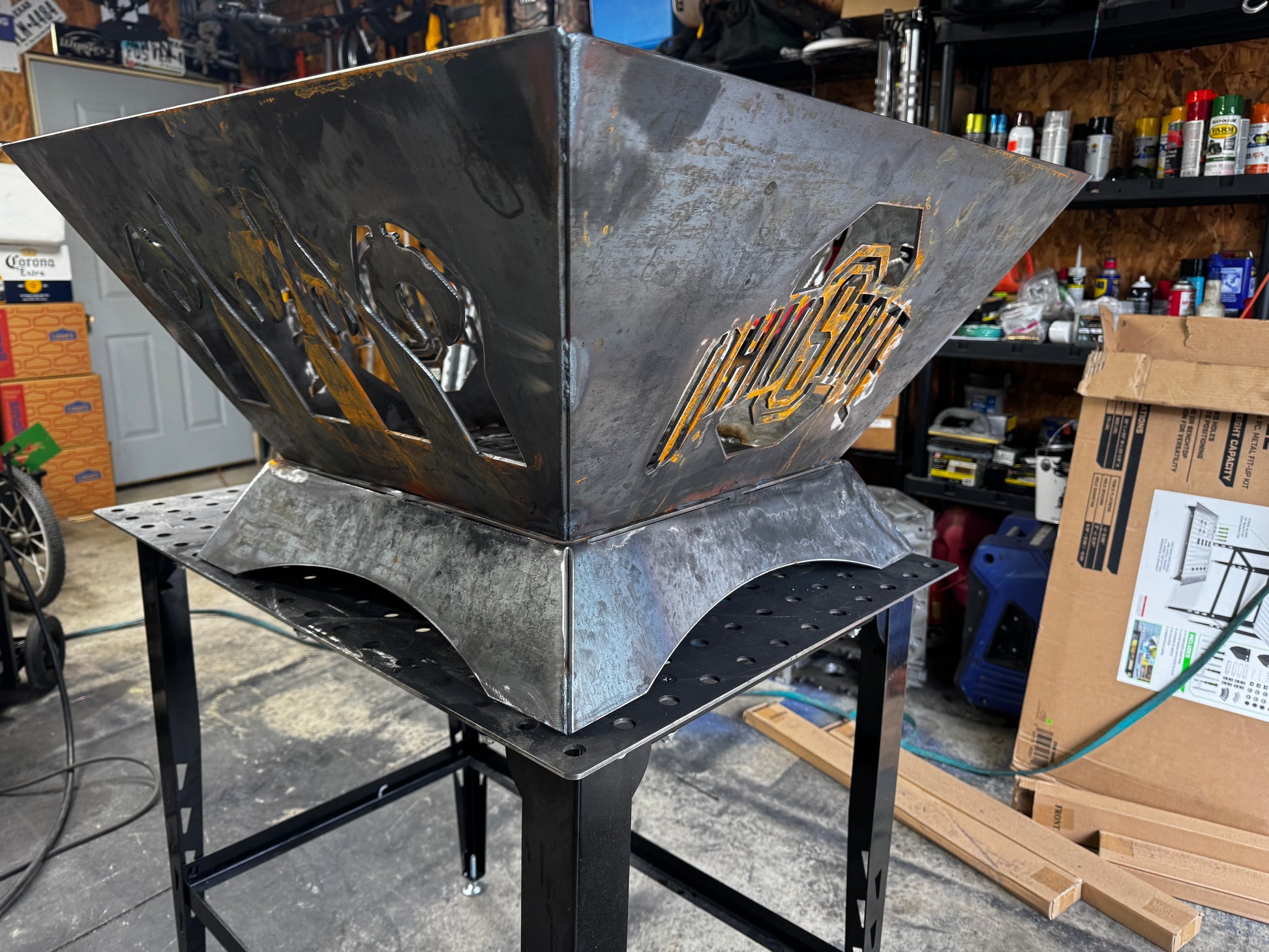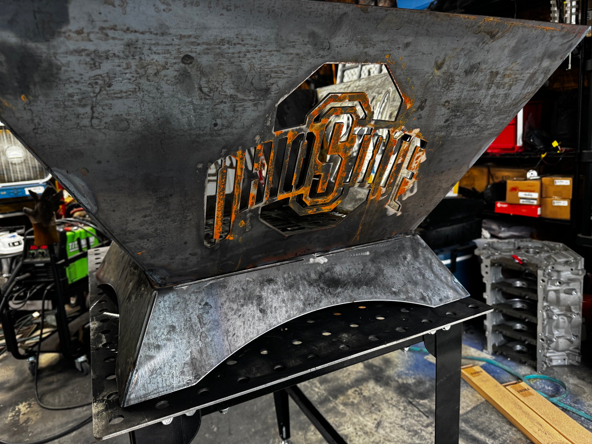 Crafted from 10-gauge steel, this firepit is built to last and adds a statement to any backyard or tailgate setup.